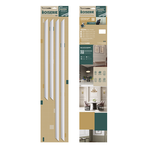 Como os boiseries já vem prontos, podem ser utilizados para criar painéis decorativos nas superfícies, acabamentos em portas e etc.