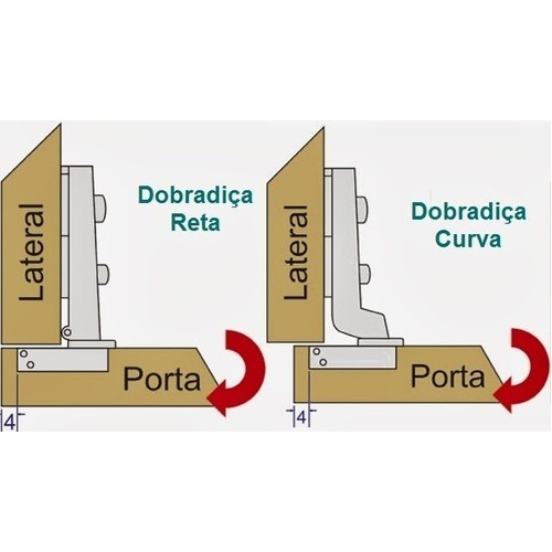 kit 100 Dobradiça com amortecedor 35mm Reta e Curva